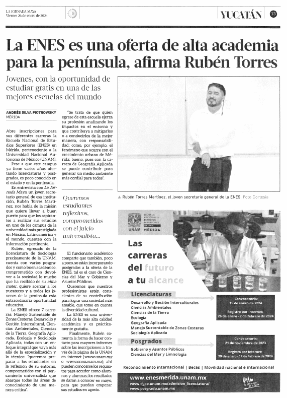 "Extrañamos a nuestro maestro Torres Herrera, su presencia, su inagotable labor como universitario, su influencia y sentido del humor",