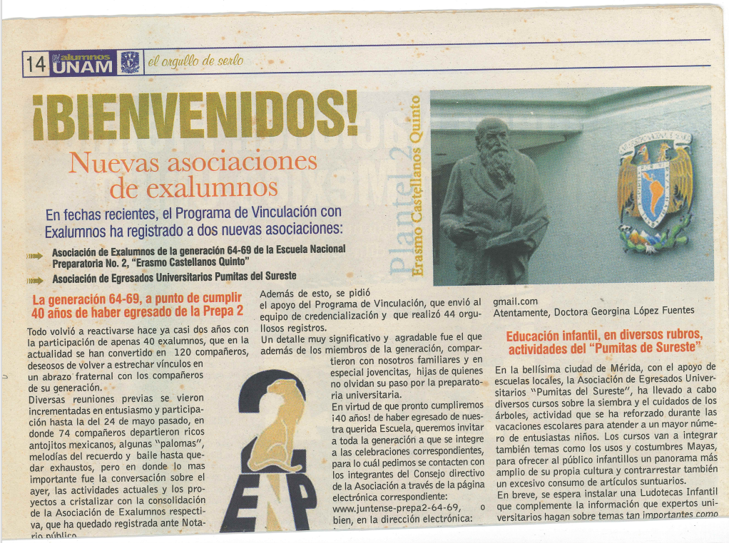 "Al terminar nuestros estidios, los compañeros nos preguntamos que profesor fue mas trascendental y unanicamente concordamos que habia sido el maestro Torres H. Por ello, fuimos con el y le preguntamos si nuestra generacion podria llevar su nombre, a lo que agradecido accedio. Con este busto de broce reflejamos el honor que le debemos y nuestra gratitud".
